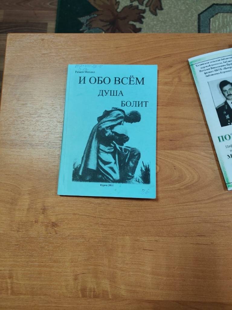 На базе Камышинской сельской библиотеке-филиала прошла Литературная встреча с Михаилом Дмитриевичем Разаевым, в рамках проекта «Слово во славу». Организатор Халинская сельская библиотека-филиал. Михаил является членом Союза курских литераторов, он известен своими поэтическими сборниками «Дорогами любви», «И обо всем душа болит». Михаил Дмитриевич – военный лётчик, участник боевых действий в Афганистане.
