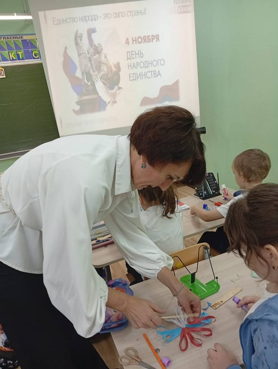 Для обучающихся 1 класса в преддверие праздника День народного единства было подготовлено мероприятие. Для ребят украсили класс картинками в тему встречи и оформлени книжно-тематическую выставку. Подготовили презентацию «Что такое единство народа» и по ней побеседовали с детьми на эту тему. В конце мероприятия сделали поделку из бумаги.